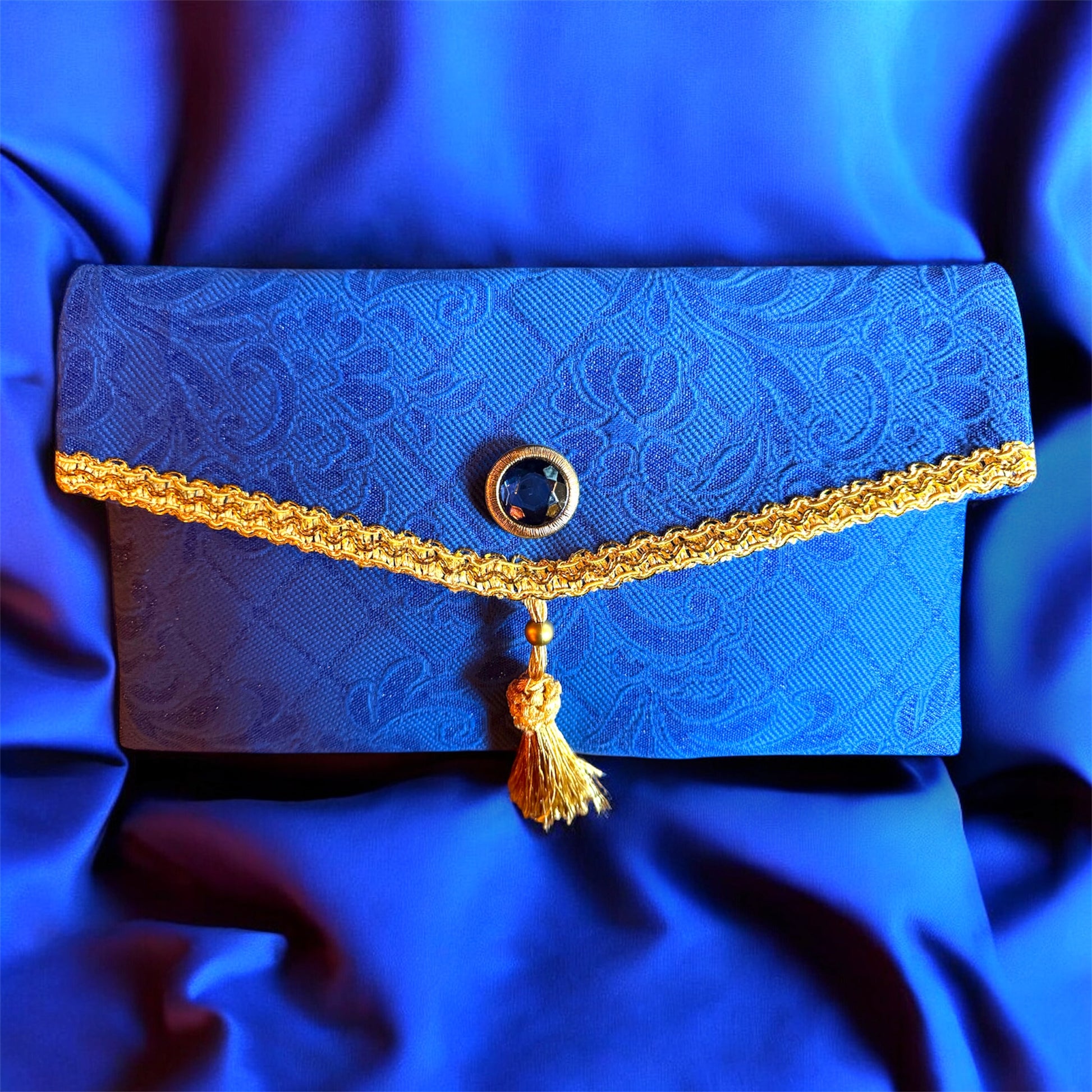 Pochette Couture Blu Jacquard con Dettagli Oro