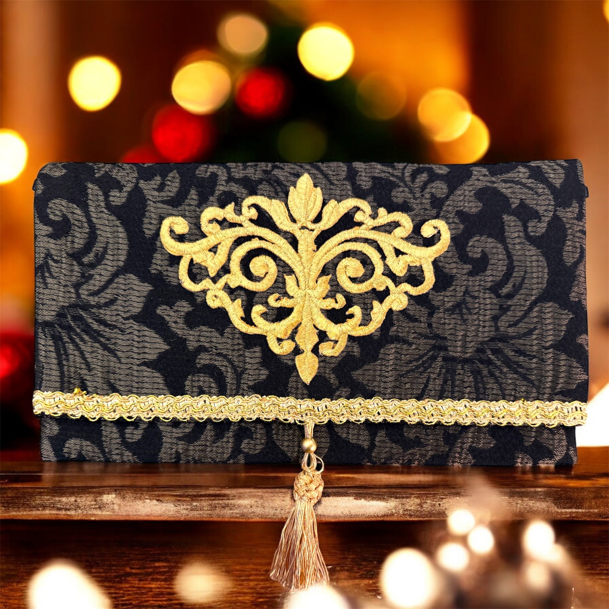 Pochette Jacquard Nero/Oro Festive Collection | JLAdore Couture