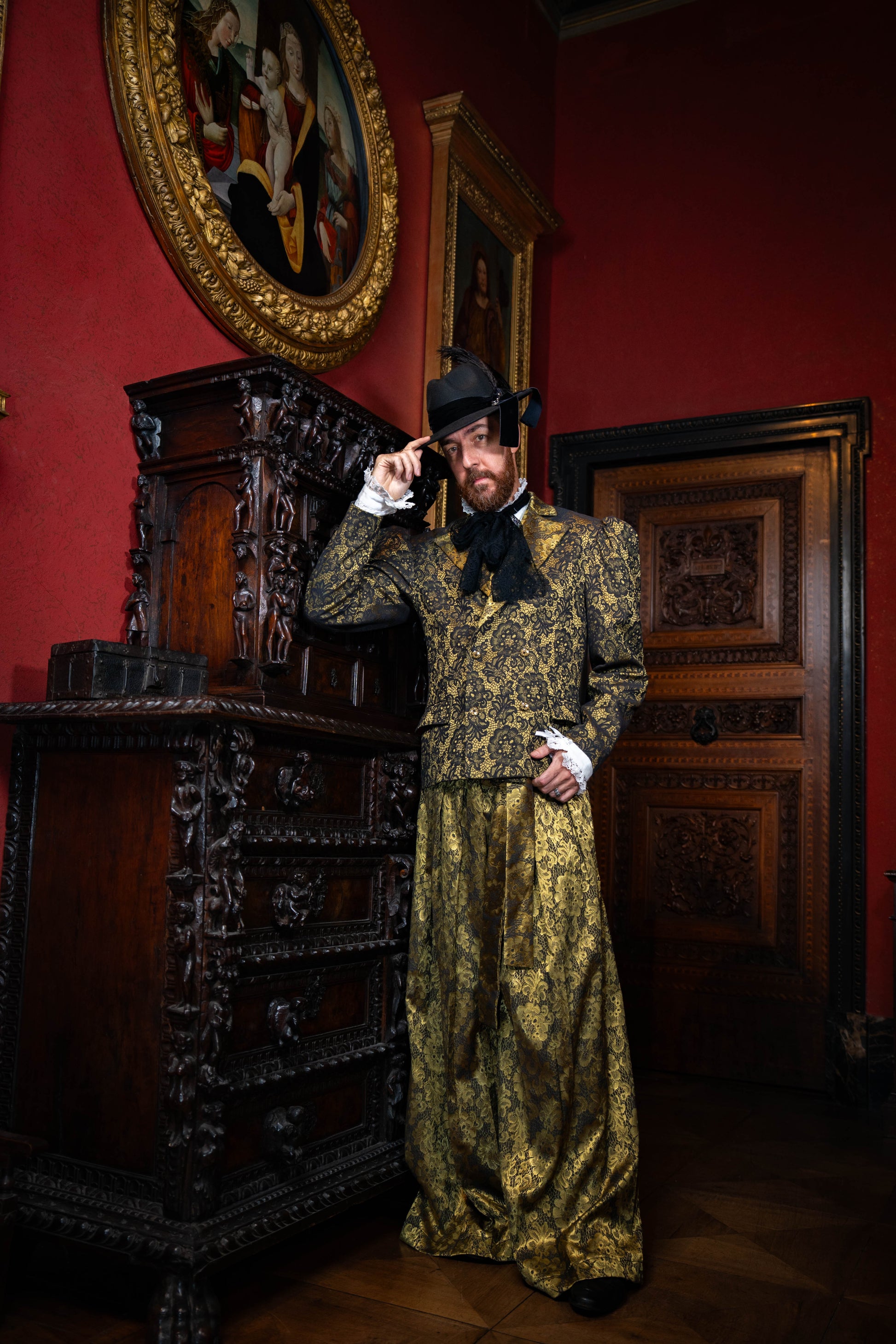 Principe di Salina – Completo damascato oro e nero in lana e seta | #AfterGattopardo